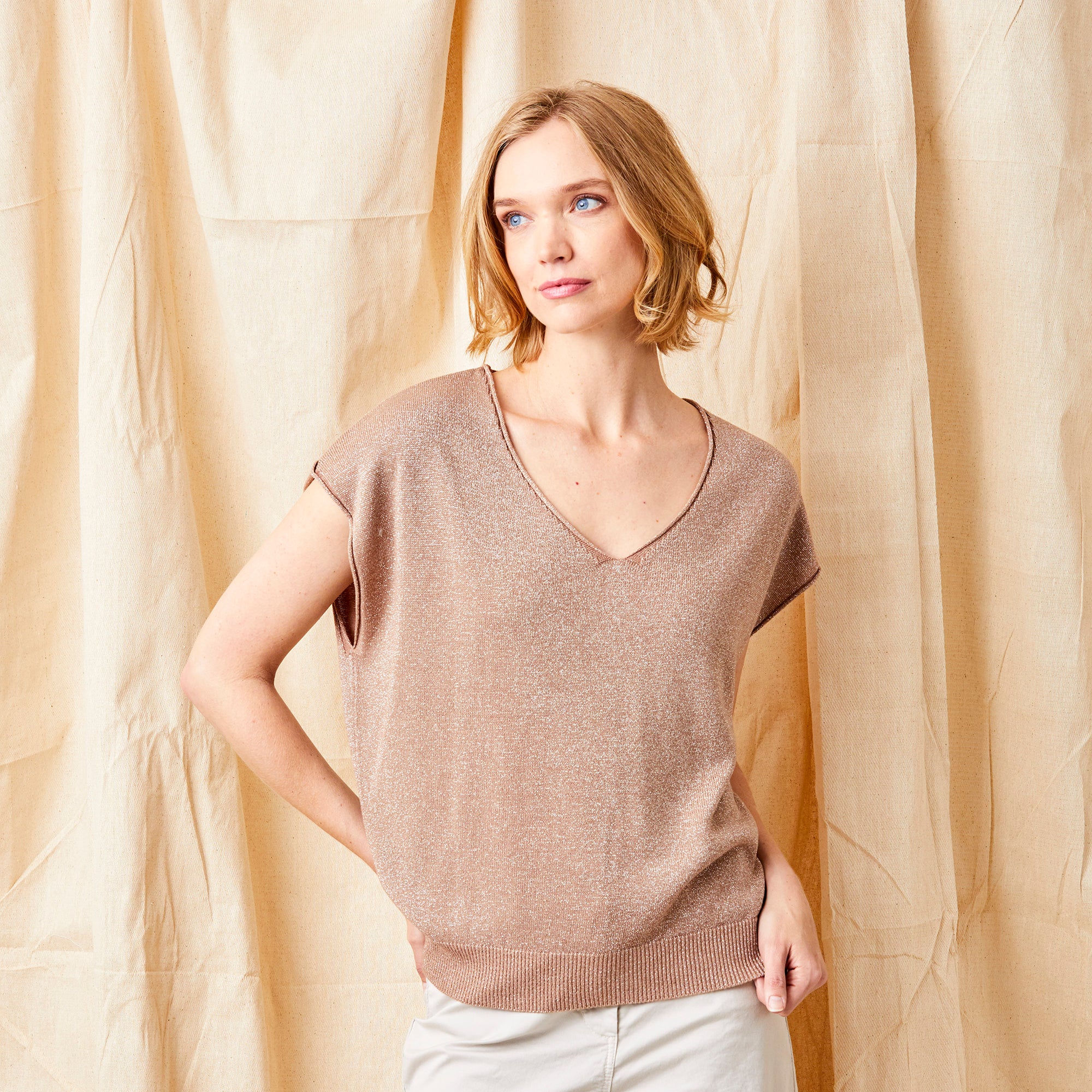 Meet the Faline V Neck Sparkle Sleeveless Knit—your new go-to for adding a dash of shimmer to any outfit. This playful sleeveless knit features a chic V neckline and eye-catching sparkle details that bring just the right amount of glam without trying too hard. Soft, comfortable, and endlessly versatile, it's perfect for layering over a crisp shirt or showing off on its own. Dress it up for a night out or keep it casual with your favourite jeans—either way, you'll be turning heads.