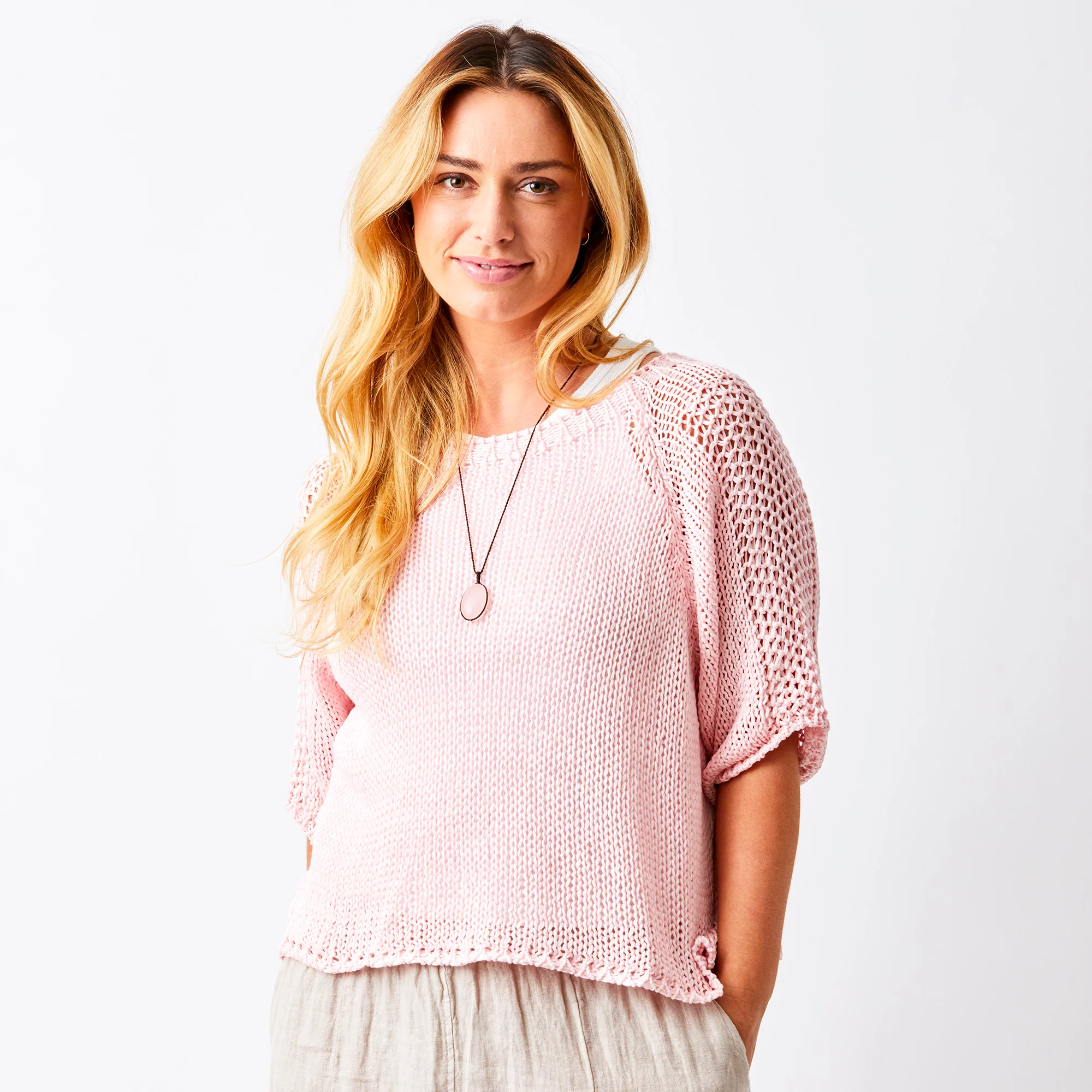 Introducing the Jacky Cotton Crochet Knit Sweater – your new go-to for effortless layering. Crafted from sumptuous soft cotton, this open knit crochet design lets you mix and match with ease, adding just the right amount of texture and breathability to any outfit. Perfect for throwing over a tee or pairing with your favourite basics, it's the versatile piece that works harder than it looks. Cosy without the bulk, stylish without the fuss.